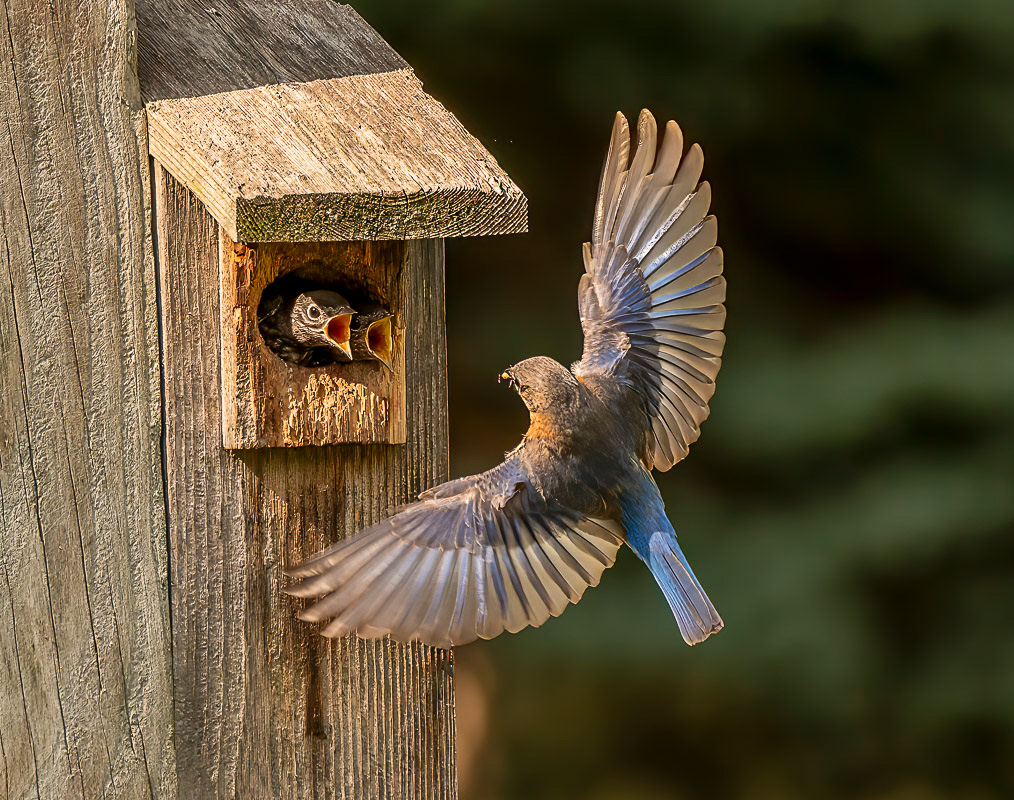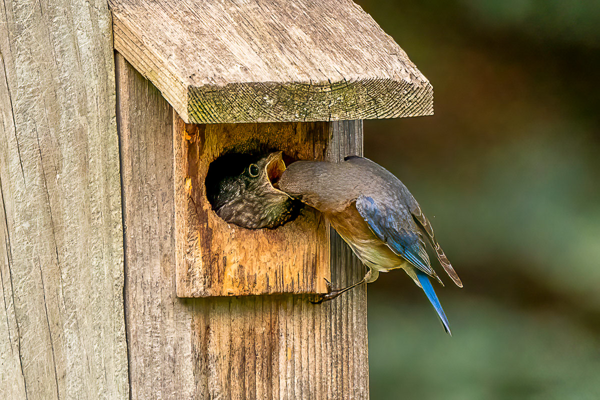 The bluebird box on my property remained empty, except for opportunistic House Sparrows, for many years. In the spring of 2024, a pair of Eastern Bluebirds had two successful broods in this nesting box. A total of nine bluebirds hatched and fledged. I had a great time watching and photographing the effort of the parents and the progress of the chicks.